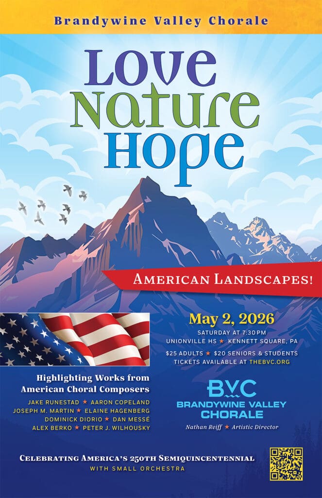 In celebration of the 250th Semiquincentennial, the BVC will highlight music from American choral composers. The concert’s featured work, The Hope of Loving by award-winning artist Jake Runestad explores the idea of love and its manifestation in our lives.