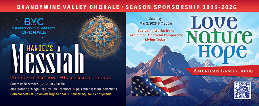 Brandywine Valley Chorale is a registered 501(c)3 organization: donations are deductible to the extent they exceed the value of goods and services received, and are eligible for corporate matching gifts.